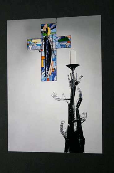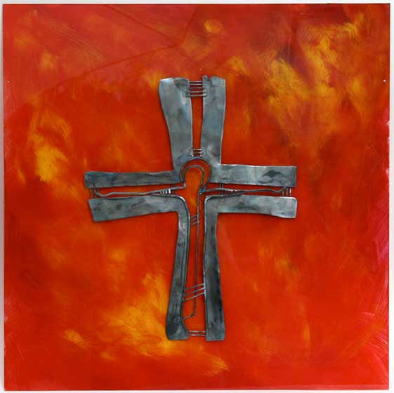 2005 Kreuz auf rot-bemaltem Plexiglas -