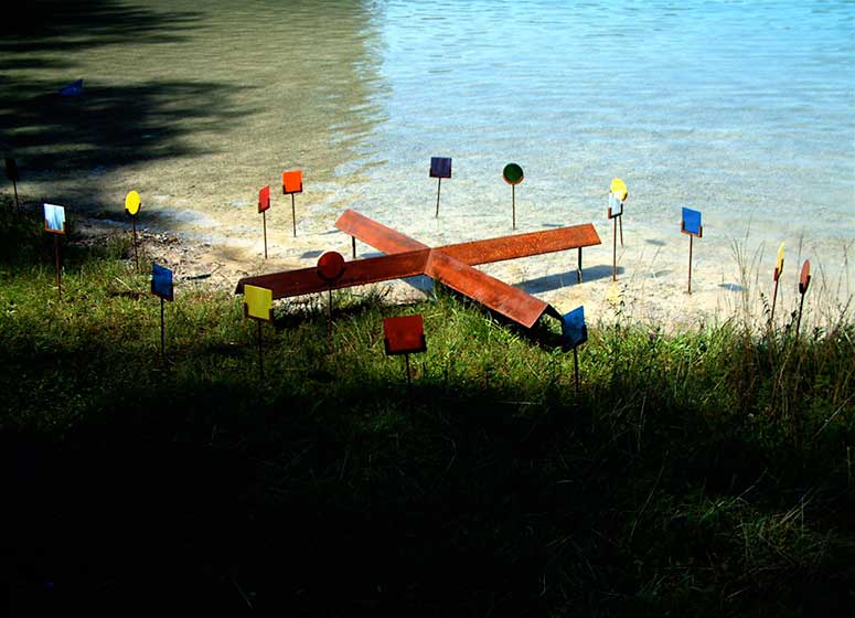 2006 Zeichen am Ufer (Eisen, Farbglas) -